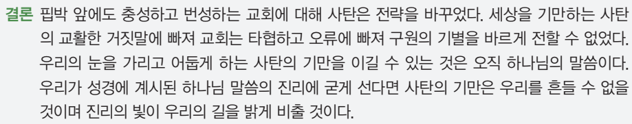 - 이 구절은 사탄의 속임수와 전략에 대해 무엇을 말해주는가?