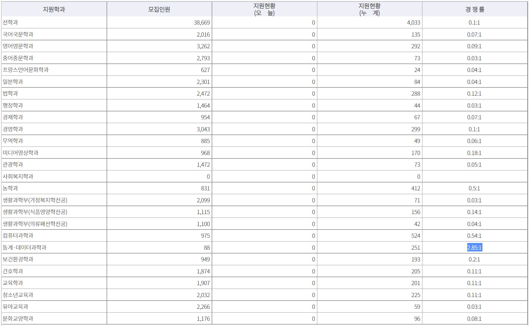 2022년 1학기 3학년 편입 추가모집에 지원했는데, 88명 모집에 251명이 지원하여 경쟁률이 2.85:1 이다.