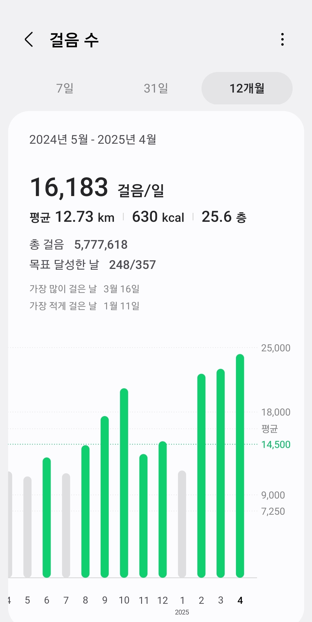 최근 3달 동안 걸음 수가 많이 증가했다.